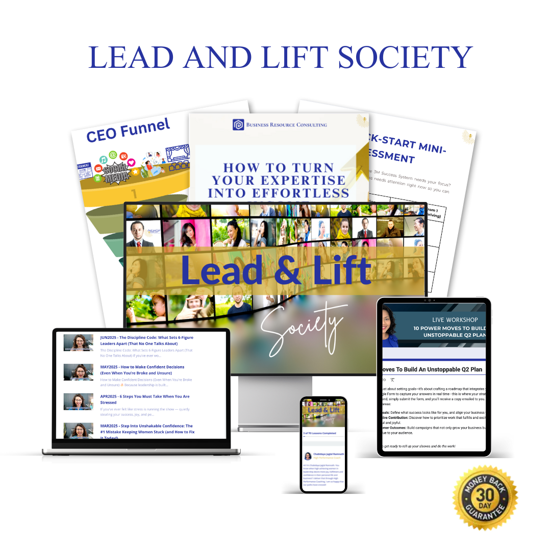 The Lead and Lift Society is a high-level, year-long execution container for growth-stage entrepreneurs ready to stop guessing, overworking, and spinning their wheels. Build clarity, momentum, and measurable results, so you can lead your business like a CEO, scale with confidence, and execute with excellence.